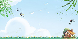 手绘柳树燕子草地春天背景