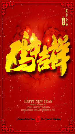 红色中国风喜庆新年PSD分层H5背景素材