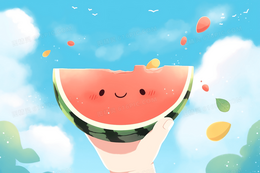 蓝天白云炎热的夏天一只手托又红又甜西瓜