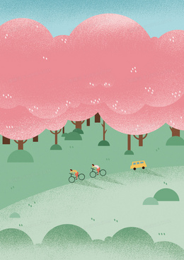 蓝色手绘卡通植树节PSD分层H5背景素材