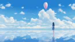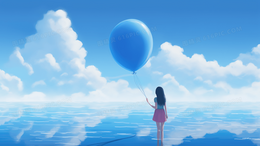> 唯美意境手拿彩色气球的小女孩人物插画