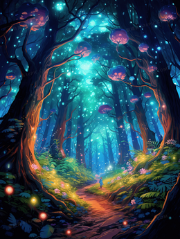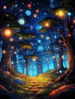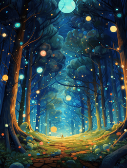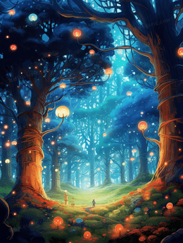 彩色梦幻唯美森林插画