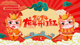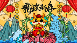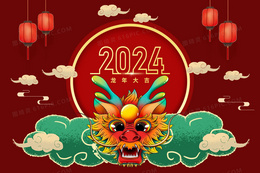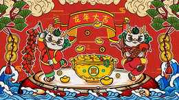 红色2024龙年大吉国潮聚宝盆锦鲤招财创意插画