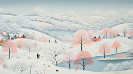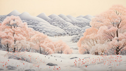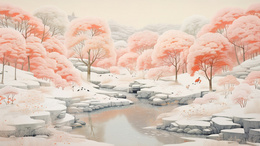 冬季雪地里的粉色树林风景插画