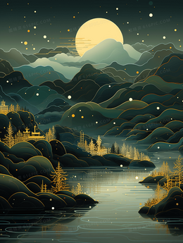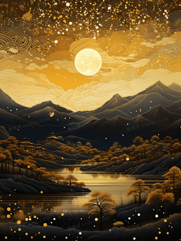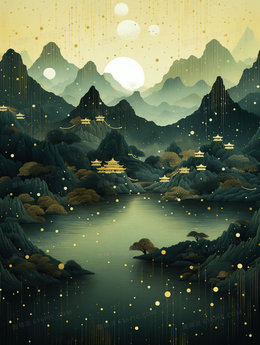 当前位置: 图精灵 > 背景图库 > 插画 > 描金中国风古典山水风景插画