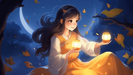 > 夜晚灯笼烛光照耀下的古代少女插画