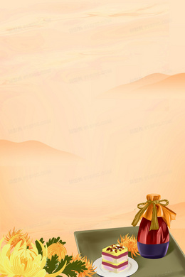 手绘质感大气重阳节传统习俗赏菊喝酒背景