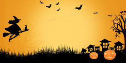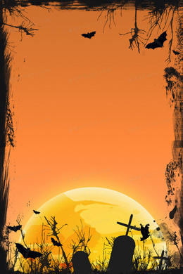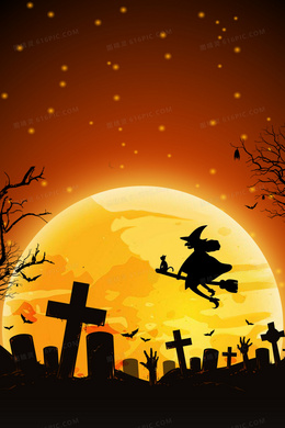 蓝色卡通夜晚万圣节月亮手绘插画背景素材
