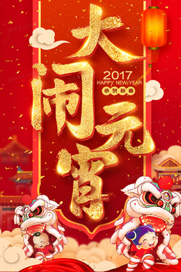 中国风大红喜庆大闹元宵广告背景