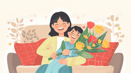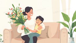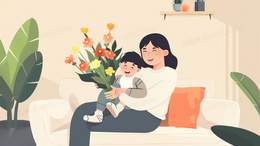 母亲抱着孩子温馨场景插画
