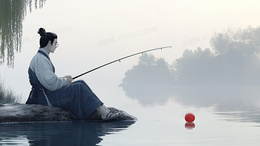 水墨风男子钓鱼背景