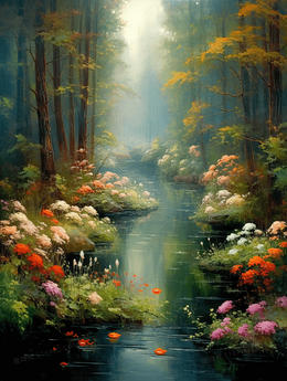 当前位置: 图精灵 > 背景图库 > 插画 > 油画质感水池水塘风景花卉静物插画