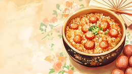 彩色卡通腊味饭美食背景