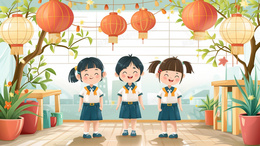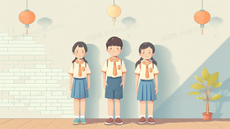 卡通风三个拿着扫帚的环卫工人劳动最光荣插图