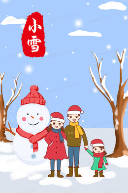 二十四节气手绘卡通青绿山川森林小雪节气背景