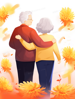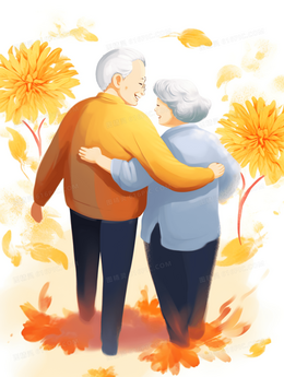 湖泊旁的菊花与灯笼重阳节插画