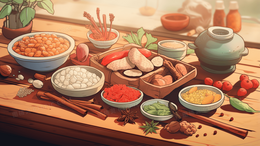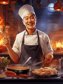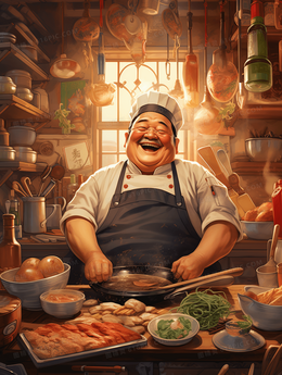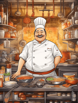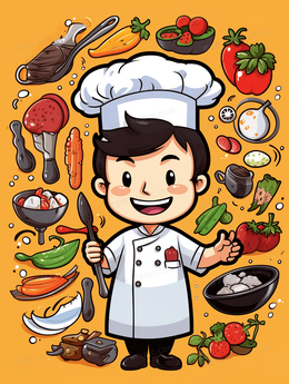 当前位置: 图精灵 > 背景图库 > 插画 > 丰富的食材和烹饪的厨师卡通插画