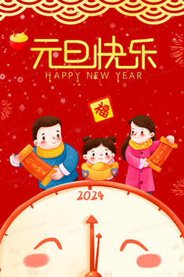 元旦快乐时钟创意插画
