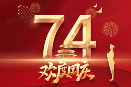 红色大气盛世华诞举国同庆74周年国庆节插画