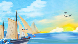 蓝色卡通手绘中国航海日插画