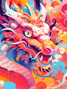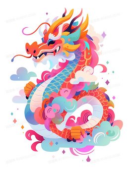 中国风彩色卡通手绘龙插画