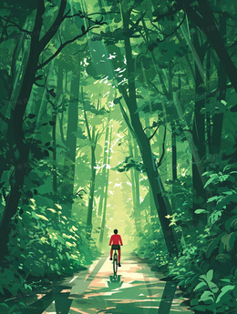 当前位置: 图精灵 > 背景图库 > 插画 > 在树林中骑行风景插画