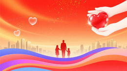 红橙渐变爱心家庭剪影背景
