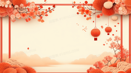 鲜花灯笼装饰的橙红色框架迎春季插画