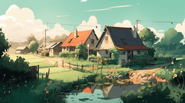 唯美乡村田野风光插画