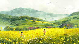 唯美油菜花田野风景插画