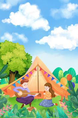 当前位置: 图精灵 > 背景图库 > 广告背景 > 手绘插画风情侣出行野营旅游背景