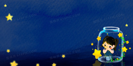 蓝色海洋沙滩扁平卡通漂流瓶背景
