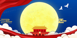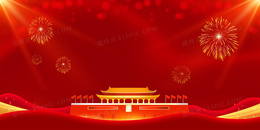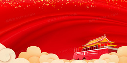 十一国庆卡通油画风天安门长城欢度国庆背景