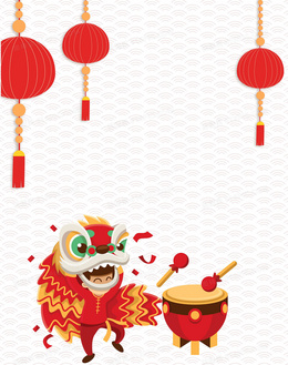 矢量灯笼舞狮子扁平化背景素材