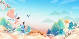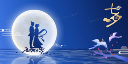 国潮风中式情人节七夕牛郎织女鹊桥会背景