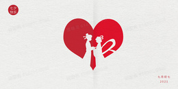 > 红色七夕牛郎织女鹊桥相会情人节插画