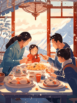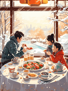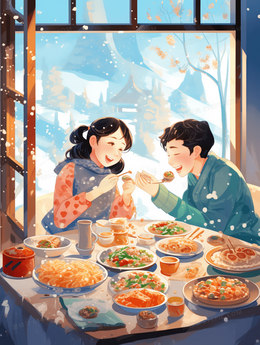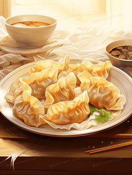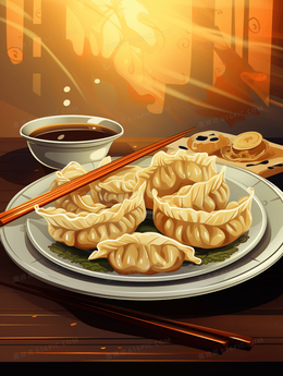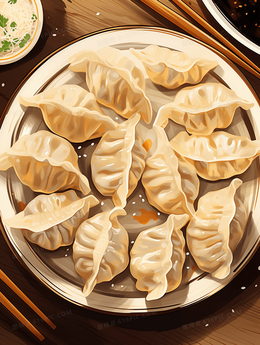 美味水饺冬至节气插画