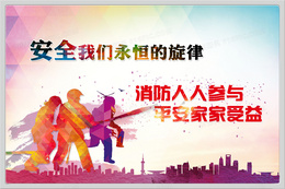 彩色几何剪影消防主题背景素材