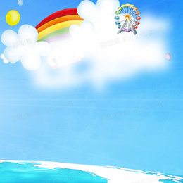文艺清新彩色渐变草地蓝天卡通背景素材
