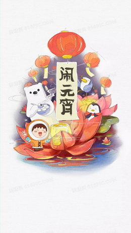 手绘闹元宵场景背景