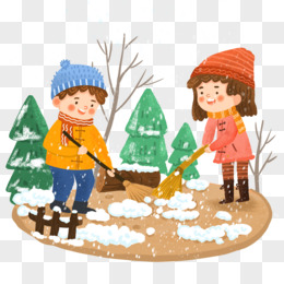 手绘卡通小伙伴扫雪场景插画免抠元素