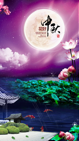 紫色中秋H5背景 1242 × 2208 JPG PSD