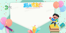绿色卡通扁平家长会信封边框背景