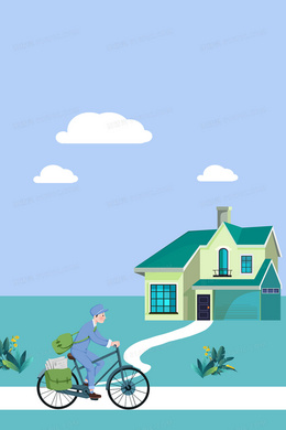 蓝色绿色卡通邮递员送信合成背景