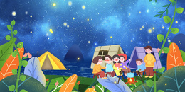卡通插画星空露营户外野营背景