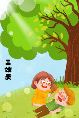 > 三伏天孩子户外中暑背景插画