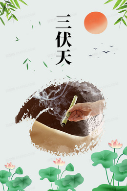 三伏天艾灸手绘插画