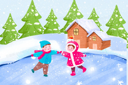 孩子户外滑冰玩耍插画