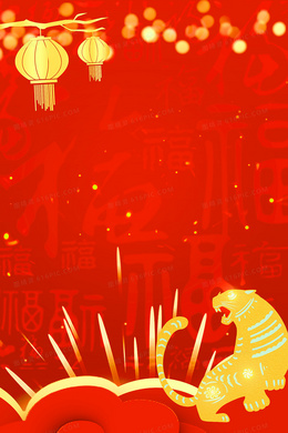红金喜庆中国风虎年剪纸新年宣传背景