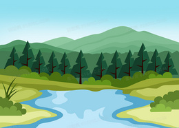 春天郊游创意河边背景元素